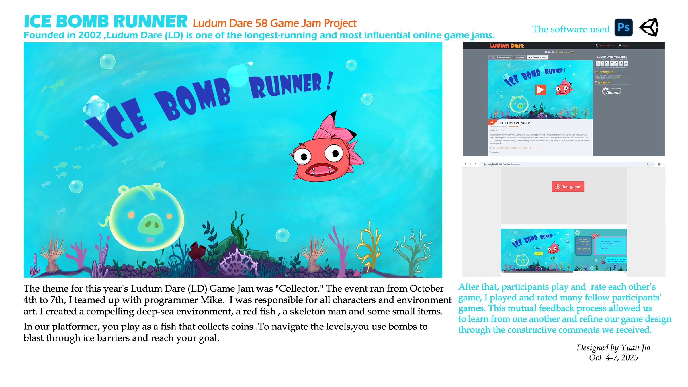 You can find my Game Jam project on the itch.io platform at the link: https://jasminej2003.itch.io/ice-bomb-runner